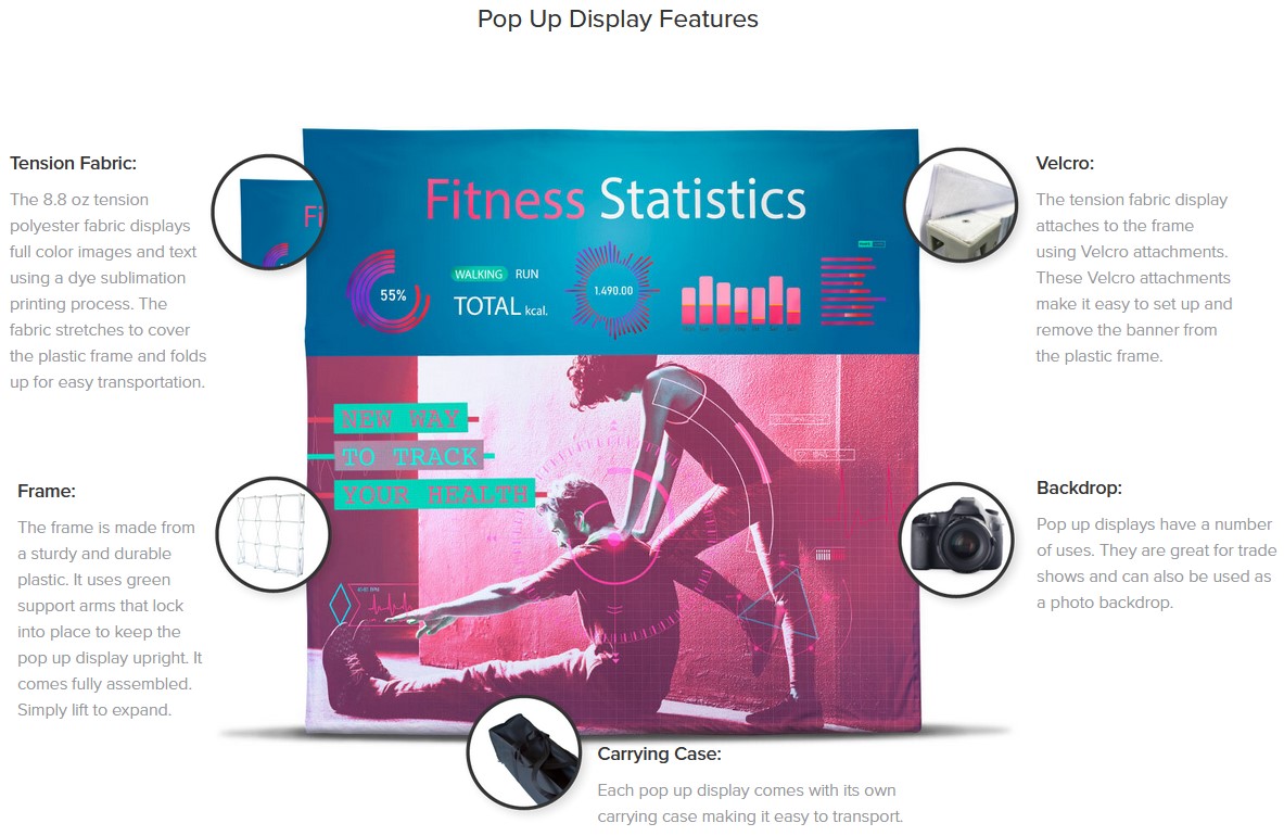 Les toiles de fond sont des outils publicitaires fonctionnels pour se démarquer de la concurrence. Ils offrent une grande visibilité et une exposition continue qui portent le nom de votre marque à l'attention des acheteurs potentiels et laissent une impression durable dans leur esprit. Une telle fonctionnalité générera de nouvelles opportunités de vente pour vous à l'avenir. Impressionnez vos clients avec nos toiles de fond en tissu imprimées avec une encre à colorant révolutionnaire, résistante à la déchirure, lavable et réutilisable à long terme. Leur légèreté vous aide également à les emballer et à les transporter sans problème.